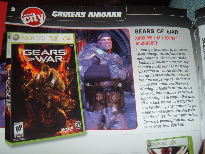 Well if exploiting the ignorant once wasn't enough, Circuit City seems to be misleading the uniformed yet again by offering a 15% off Gears of War coupon that expires on 10/31/2006, more than a week before the game is released in store on 11/08/2006. The coupon was attached with an ad in the November '06 issue (#63) of the Official Xbox Magazine.